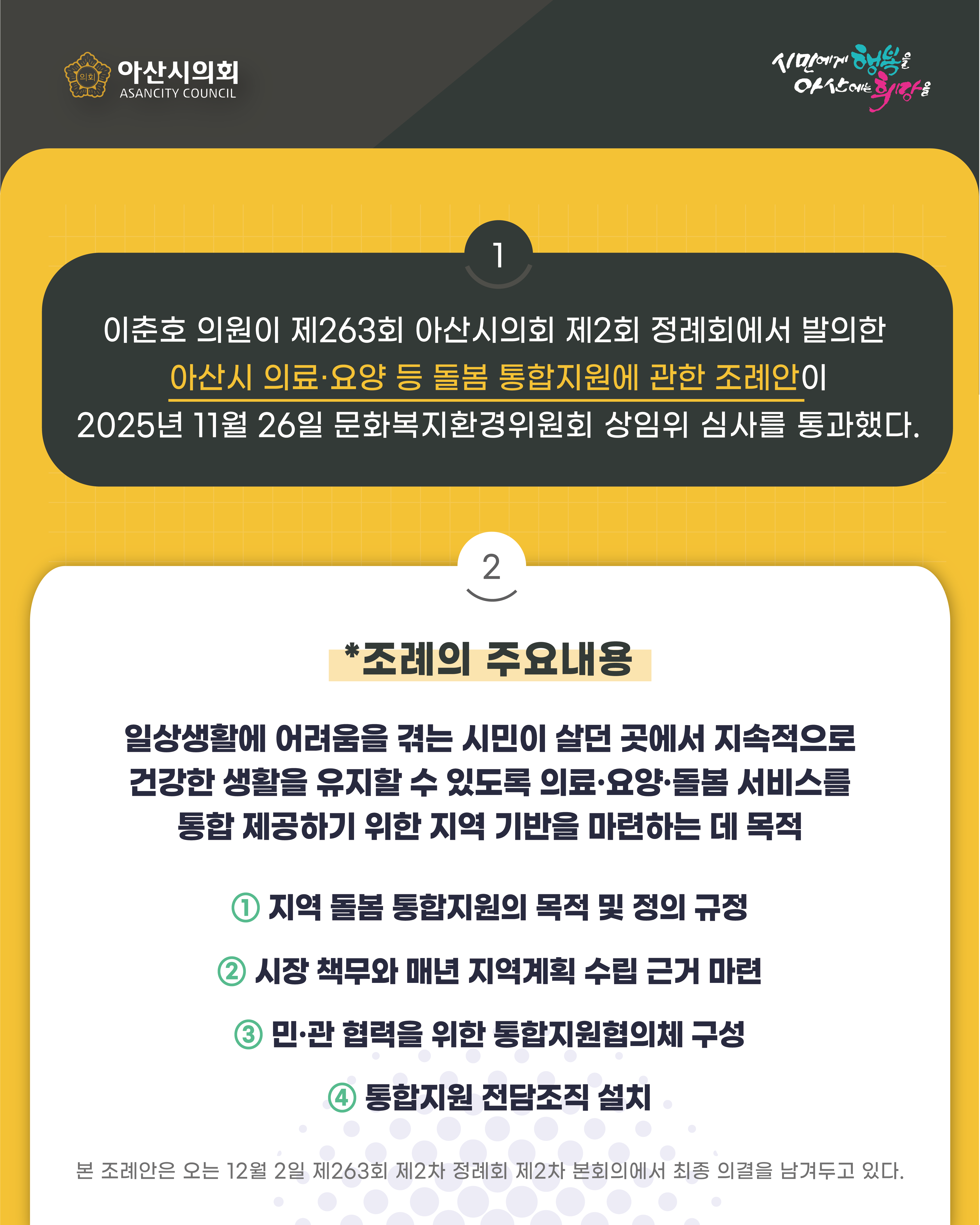 아산시의회 이춘호 의원, ‘의료·요양 등 돌봄 통합지원 조례’ 제정 추진