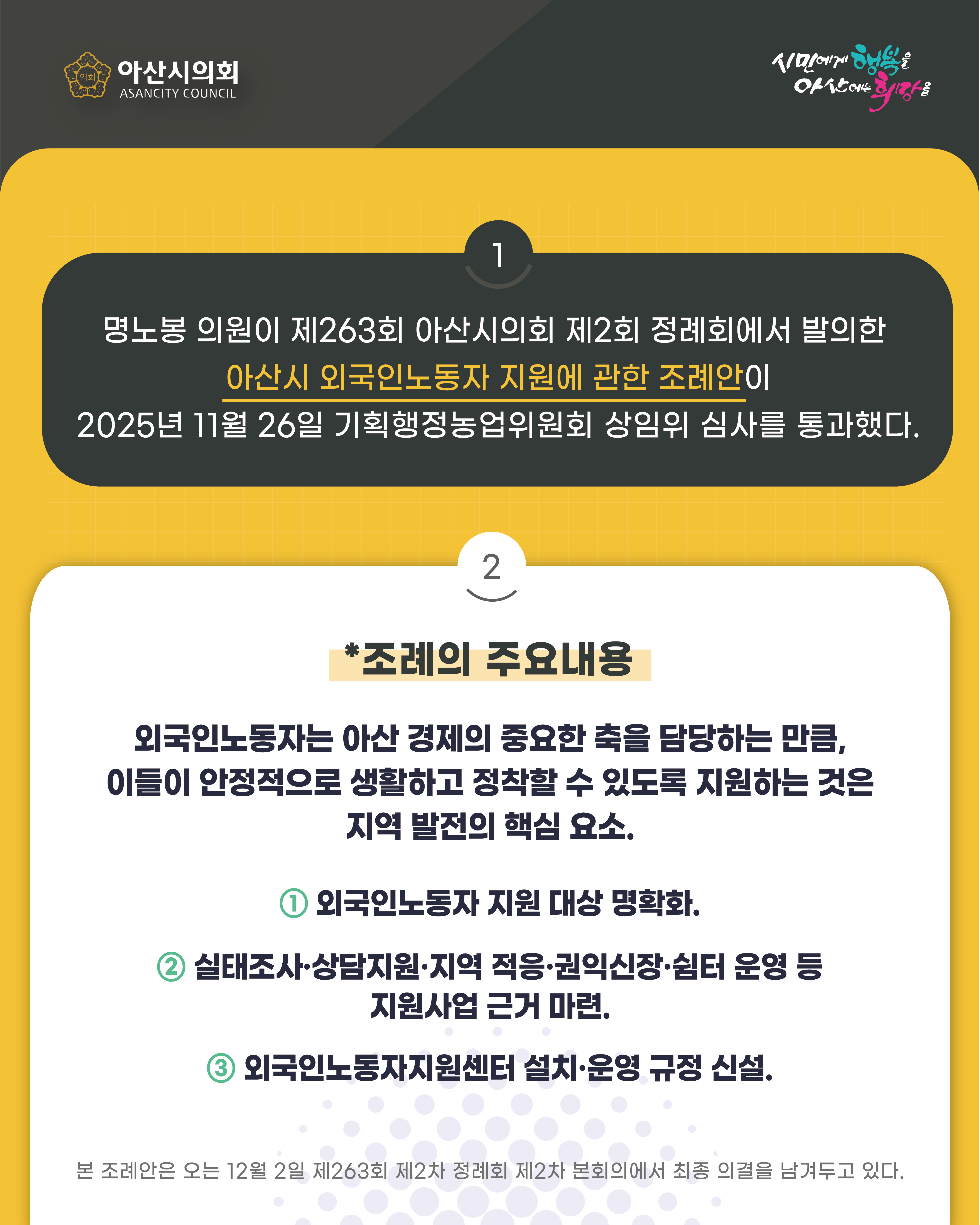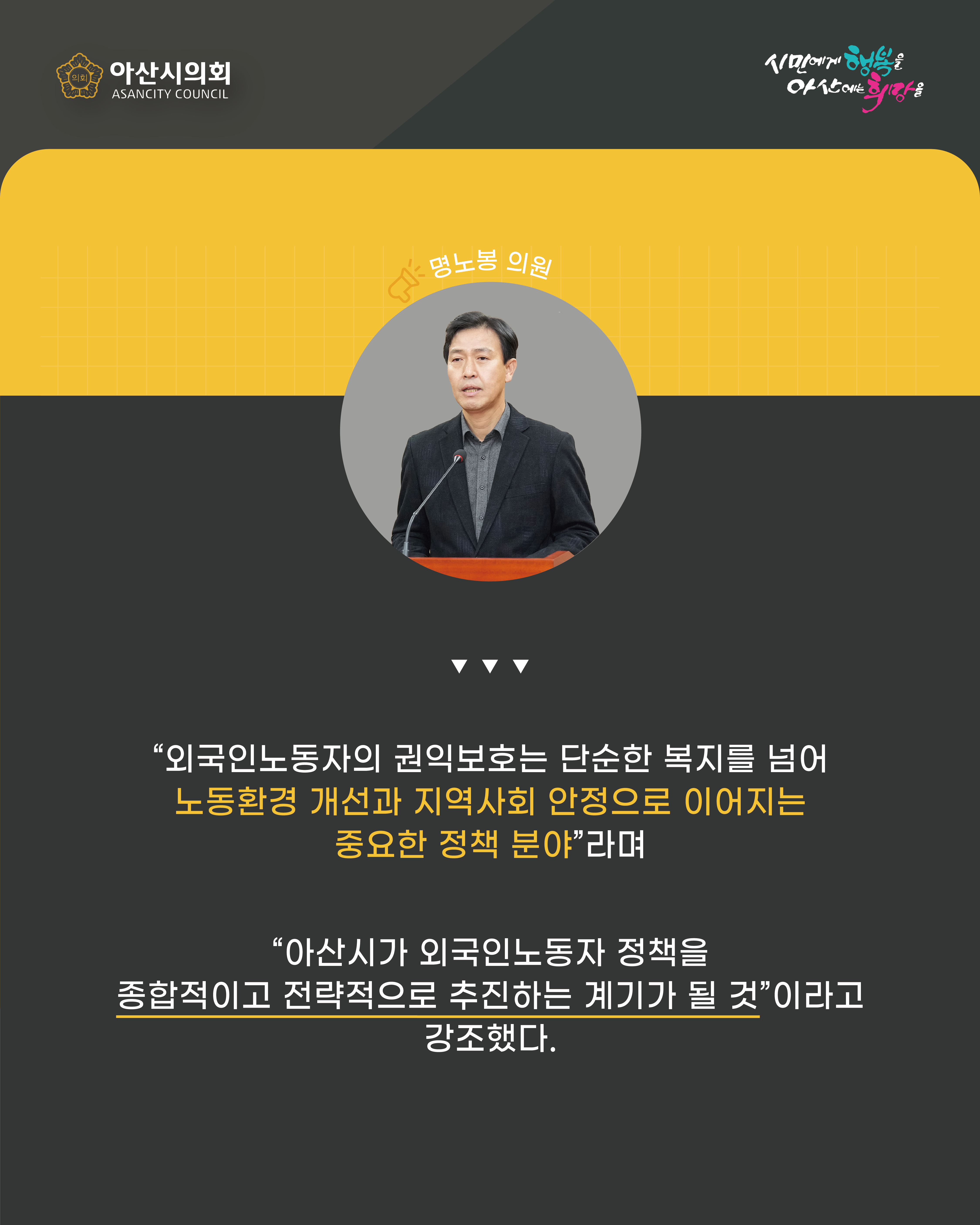 아산시의회 명노봉 의원, 「아산시 외국인노동자 지원에 관한 조례안」발의