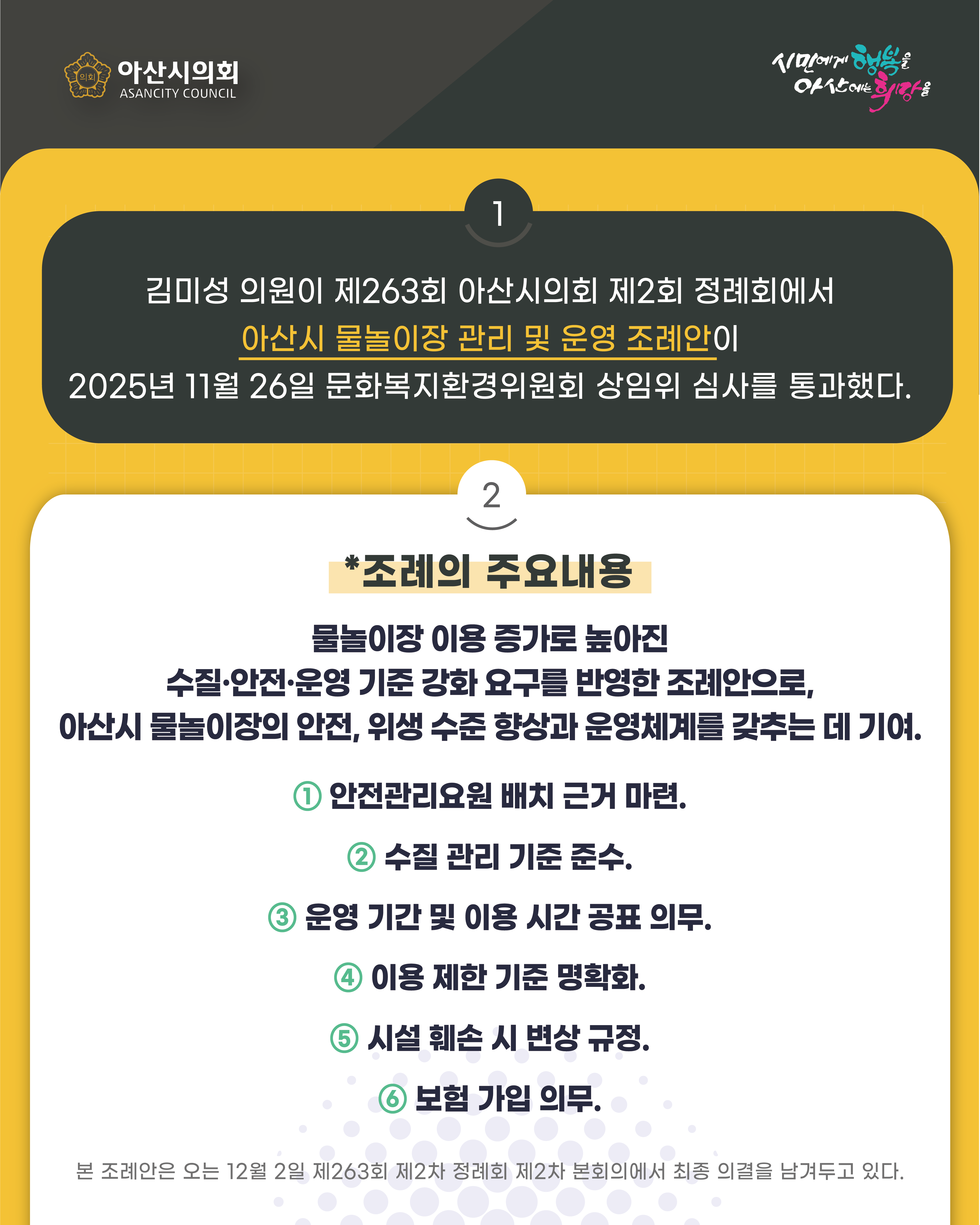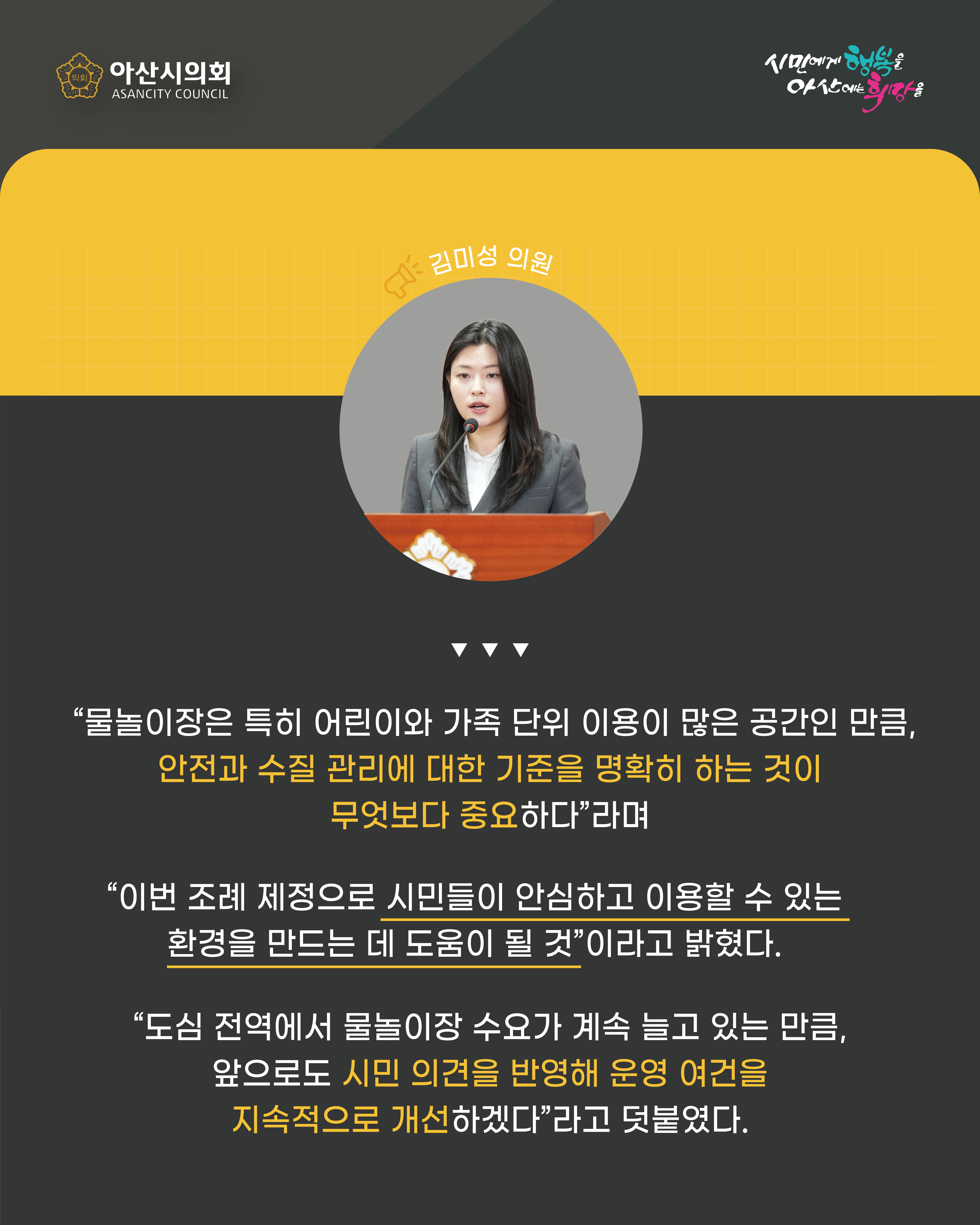 김미성 아산시의원, 물놀이장의 안전하고 체계적인 운영 기준 확립
