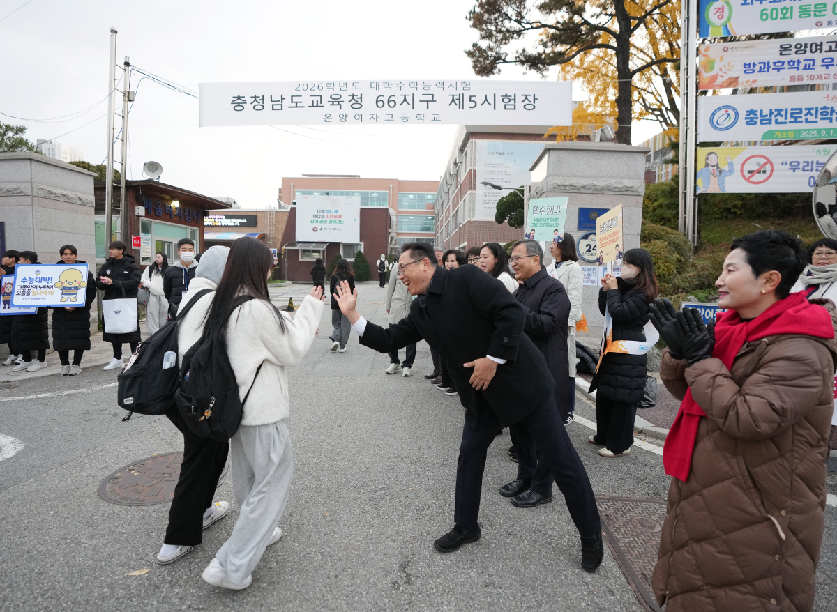 아산시의회 홍성표 의장 등 수능 현장 찾아 수험생들을 응원하고 있다.