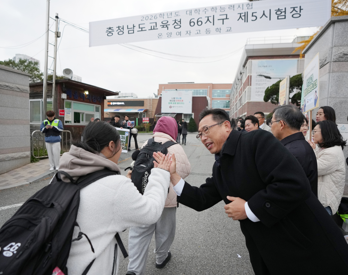 아산시의회(의장 홍성표)는 11월 13일(목) 2026학년도 대학수학능력시험일을 맞아 온양여자고등학교를 방문해 수험생들을 격려하고 응원의 메시지를 전했다.