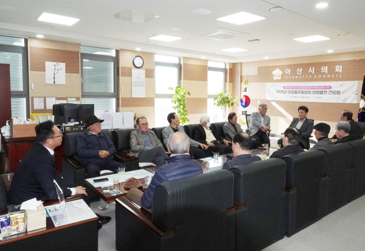 아산시의회는 14일 의정동우회 회원들과 의장실에서 간담회를 갖고 지역 현안과 의정 발전 방안을 논의했다.