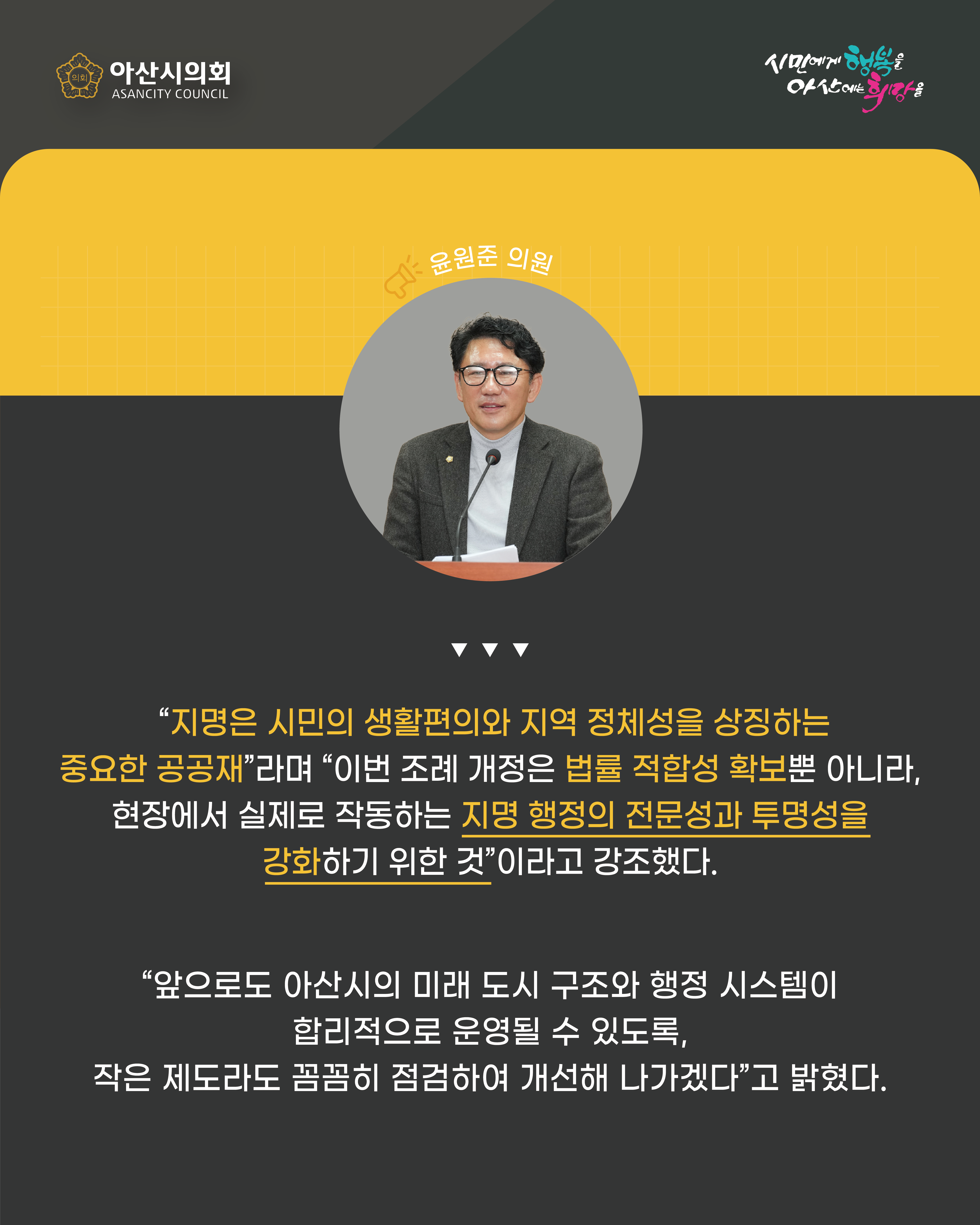 시민에게 행복을 아산에는 희망을
