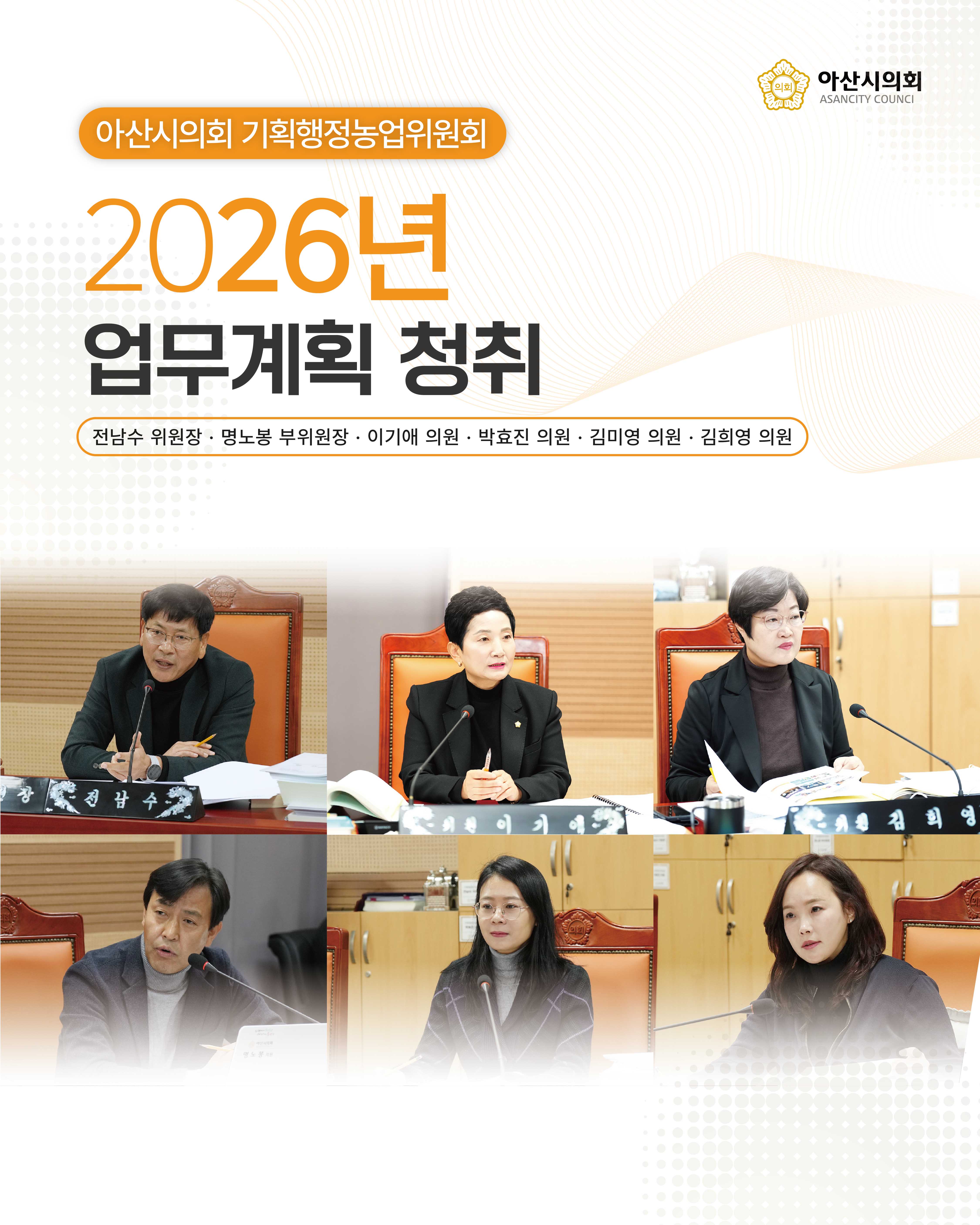 아산시의회 기획행정농업위원회, 2026년도 주요업무 추진상황 보고 청취