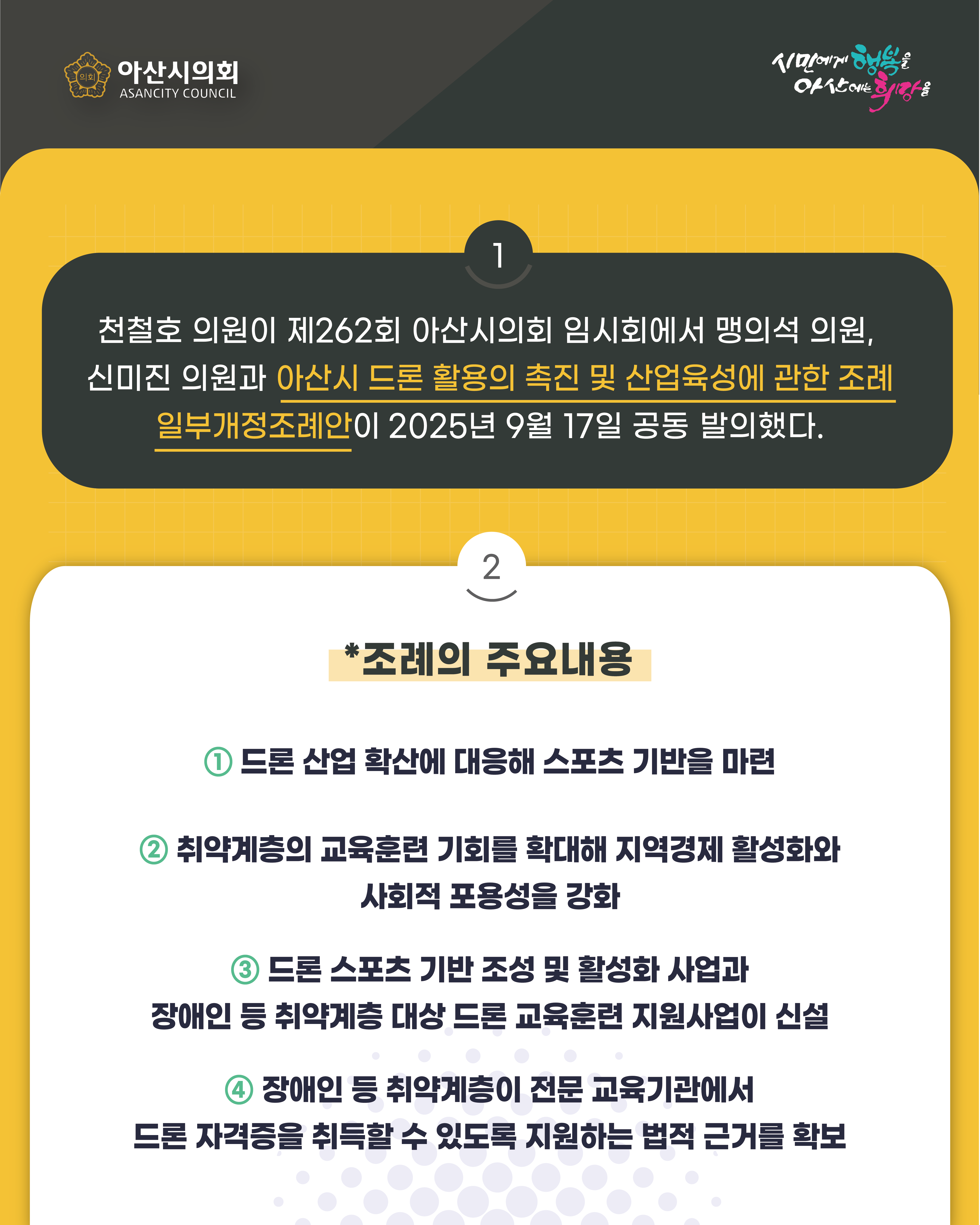 아산시의회 천철호 의원, 「아산시 드론 활용의 촉진 및 산업육성에 관한 조례 일부개정조례안」 대표 발의