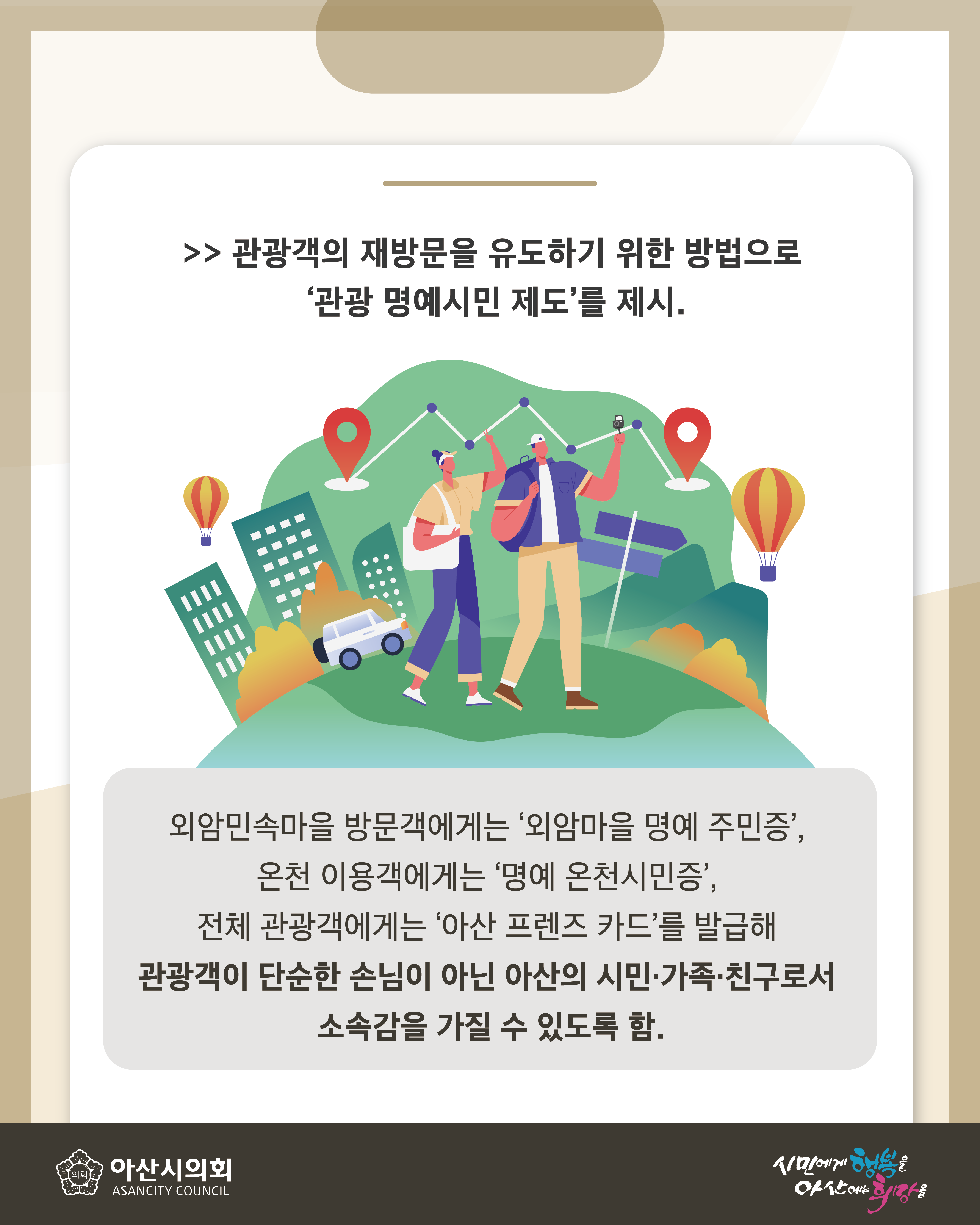 아산시의회 이춘호 의원, ‘관광 명예시민 제도’ 도입 제안 “아산을 다시 찾고 싶고, 오래 머물고 싶은 도시로”